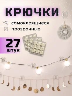 крючки для гирлянд самоклеящиеся прозрачные на стену 36шт