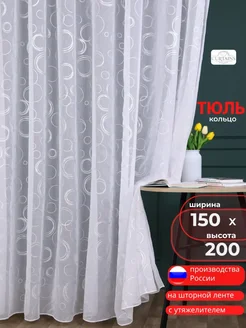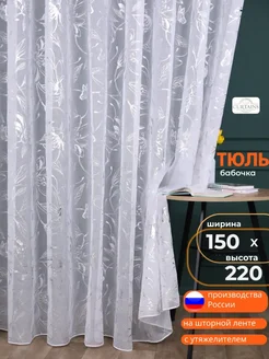 Тюль под лен 150х200 в гостиную и спальню готовый с рисунком