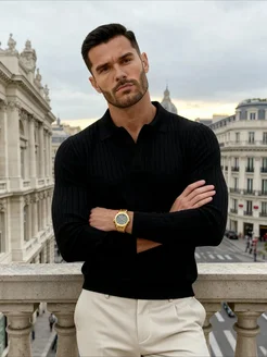Футболка поло в рубчик Old Money с коротким рукавом черное