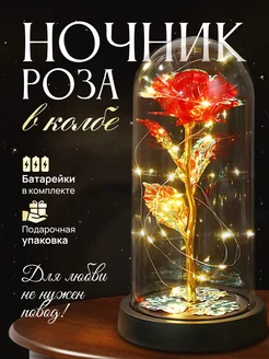 Ночник роза в колбе красная