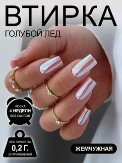 Втирка для ногтей жемчужная синий лед голубая зеркальная