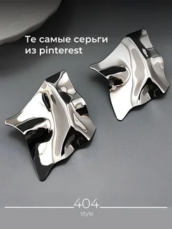Серьги крупные мятый металл гвоздики бижутерия 2026