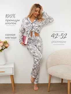 Пижама со штанами и рубашкой домашний костюм хлопок