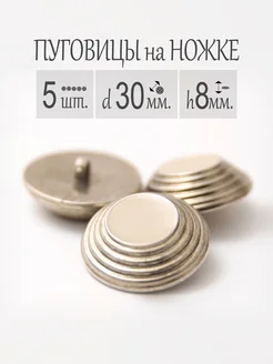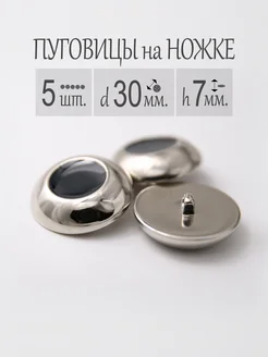 Пуговицы большие 5 шт. хромированные, металлические, 30 мм