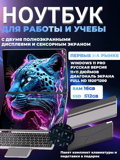 Мини ноутбук с сенсорным экраном для работы и учебы 11"+11"