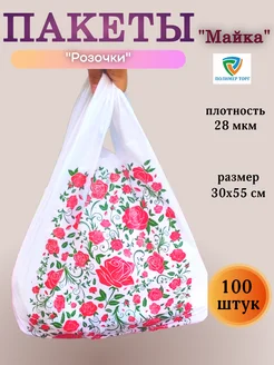Пакеты майка с ручками для ПВЗ 30х55 см прочные 100 шт