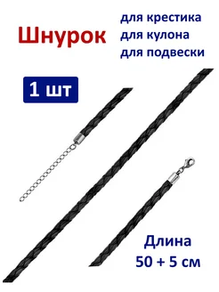 Шнурок для крестика кулона 50 см 2 шт черный гайтан карабин