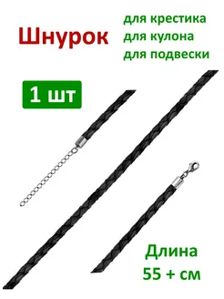 Шнурок для крестика кулона 55 см 2 шт черный гайтан карабин