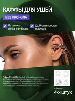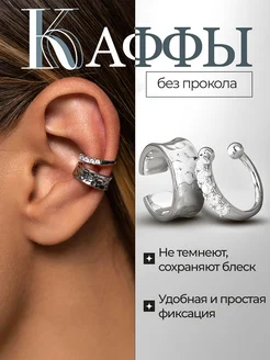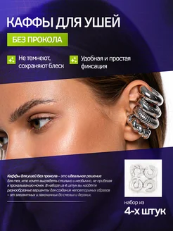 Каффы без прокола на уши крупные моносерьга серебристые 4шт