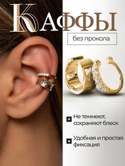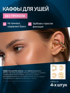 Каффы без прокола на уши крупные моносерьга золотистые 4шт