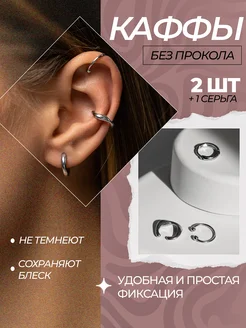 Каффы без прокола на уши маленькие моносерьга 3шт