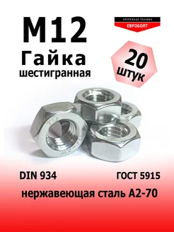 Гайка нержавеющая М12 DIN934 А2 20 шт