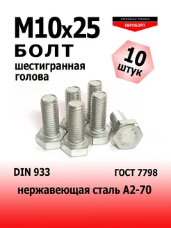 Болт нержавеющий М10х25 А2 DIN933 10 шт