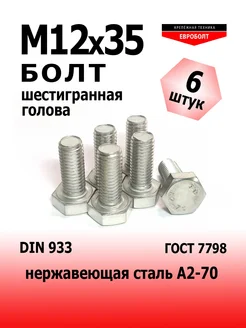 Болт нержавеющий М12х35 А2 DIN933 6 шт