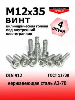 Винт внутренним шестигранником М12х35 нерж. DIN912 4 шт