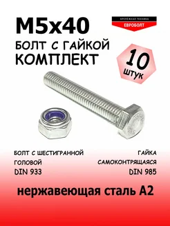 Болт нерж М5х40 DIN933 с стопорной гайкой М5 по 10 шт