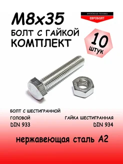Болт нержавеющий М8х35 DIN933 с гайкой М8 по 10шт