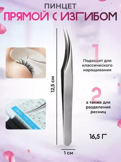 Пинцет для наращивания ресниц прямой с изгибом