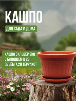 Кашпо СИЛЬВЕР ЭКО с блюдцем D 28, объём 7,2л терракот