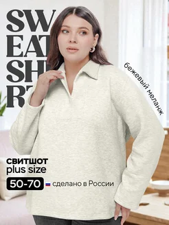 Свитшот оверсайз с воротником поло из футера с начёсом