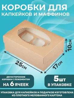 Коробка для маффинов и капкейков на 6 шт, с окном