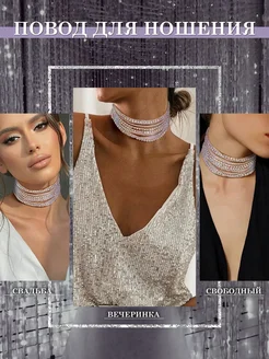 чокер со стразами,чокер блестящий,чокер галстук