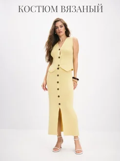 Костюм летний вязаный пляжный топ с юбкой на купальник