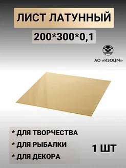 Латунный лист 200х300х0,1 мм, заготовка для творчества 1 шт