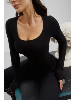 Лонгслив базовый облегающий скимс кофта с вырезом