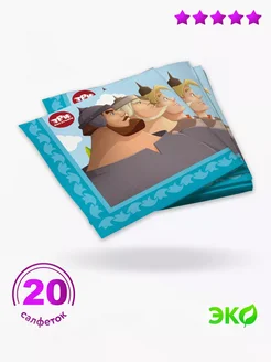 Три Богатыря. Салфетки бумажные трехслойные 33*33 см, 20 шт
