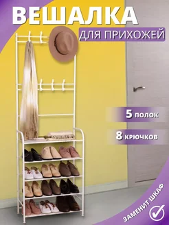 Вешалка напольная для одежды в прихожую металлическая белая