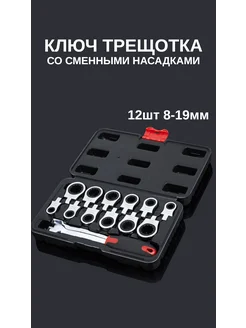 набор ключей с трещоткой сменные насадки 12 шт 8-19 мм