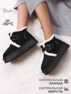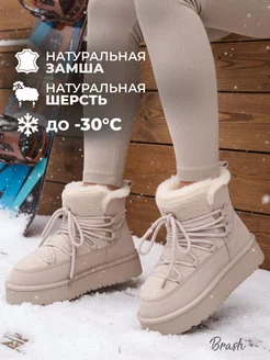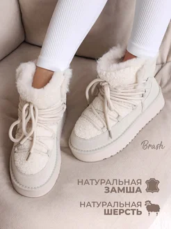 Угги ботинки на шнуровке высокие с натуральным мехом