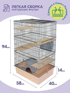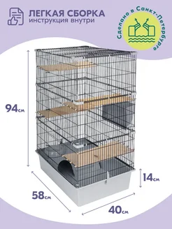 Клетка для шиншиллы грызунов крыс большая 58х40хh94см