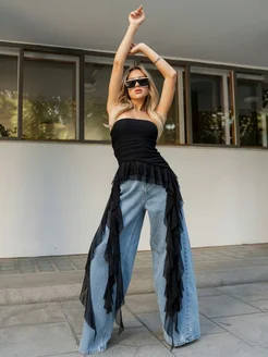 Топ с воланами вечерний с открытыми плечами