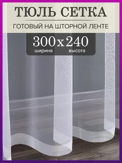 Тюль в спальню 300х250 см готовый на ленте с утяжелителем