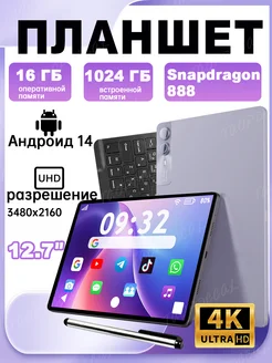 Планшет андроид, с клавиатурой 16 ГБ 1024ГБ Android 14