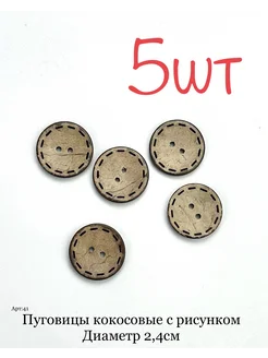 Пуговицы кокосовые с рисунком 2,4см 2 прокола 5шт