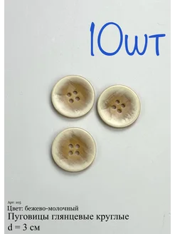 Пуговицы глянцевые круглые 3см 4 прокола 10шт