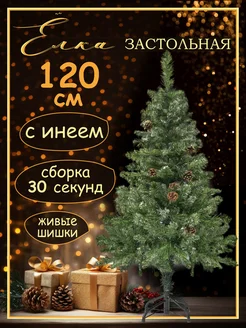 Елка искусственная 120 см с инеем и шишками новогодняя