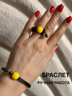 Браслет кожа, желтый камень