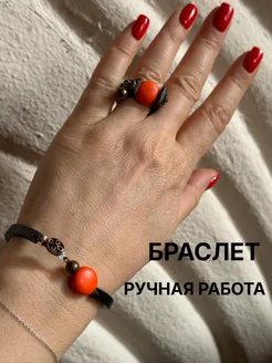 Браслет кожа, оранжевый камень