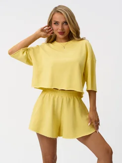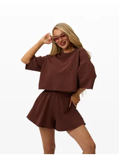 Летний костюм с шортами и футболкой оверсайз коричневый