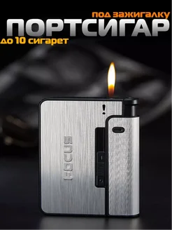 Портсигар автоматический с отсеком для зажигалки серебристый