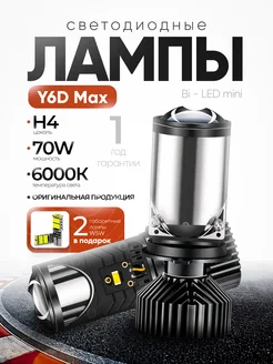 Led лампы H4 с линзой Y6D Max автомобильные bi-led
