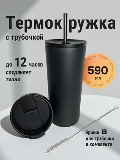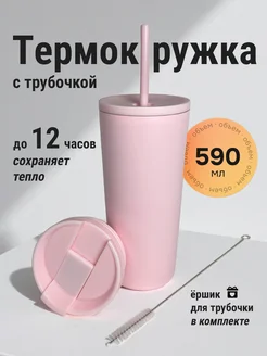 Термокружка автомобильная с трубочкой и крышкой для кофе