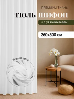 Тюль в гостиную спальню шифон белая на кухню длинная 260х300