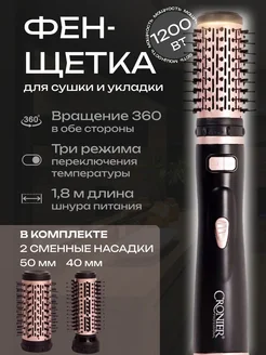 Фен щетка стайлер с вращением и ионизацией для волос 2 в 1