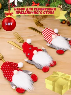 Новогоднее украшение конверт для сервировки стола набор 3шт