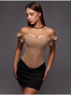 Корсет вечерний топ утягивающий коричневый на молнии